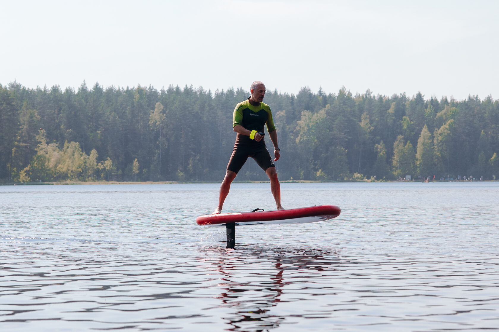 - На воде (на животе, «бодисерфинг»): Лягте грудью на доску, возьмите пульт в руки и начните медленно двигаться по воде, управляя курком. Это поможет вам понять, как доска откликается на ваши команды, и почувствовать момент, когда крыло начинает создавать подъемную силу.